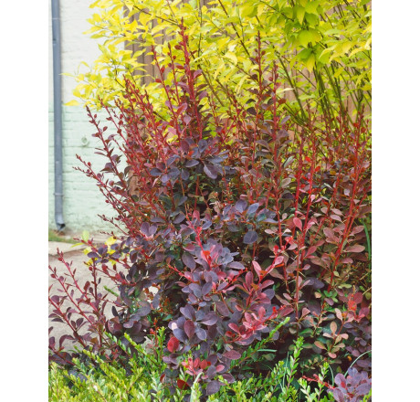 ***PARAMETRE***Kvitnutie - 3, 4, 5; Výška - do 4 m; Odolnosť - plne mrazuvzdorná; Svetlo - slnko; Zálievka - stredná; Pôda - stredne ťažké, piesočnatohlinité, hlinité; Vlhkosť pôdy - suchá; Farba listu - vínovočervená, bordová; Farba kvetu - žltá; Rýchlosť rastu - stredne rýchly; Umiestnenie - skupinová výsadba_solitera_živé ploty; Špeciálne vlastnosti - jedovatosť_tŕne, ostne