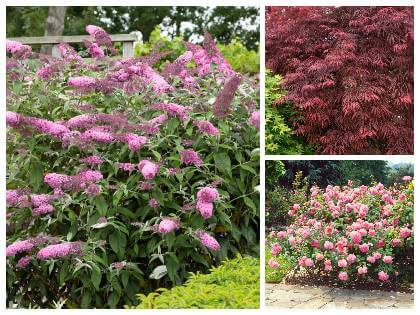 Kvitnúce: budleja, orgován, zlatý dážď, tavoľník, pajazmín, tamariška, škumpa, vajgelia, tavoľa, kalina, hortenzia.