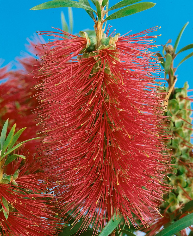 Svietivočervené valcovité súkvetia tohto východoaustrálskeho kra sú skutočne neobvyklé. Sú tvorené množstvom drobných kvietkov s veľmi dlhými tyčinkami. Prekvapte priateľov novou rastlinkou na svojej terase či pri vchode do domu. Dobre sa tvaruje. Má rád kyslú pôdu nie vápenatú, dobre je použiť substrát pre rododendrony.
