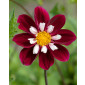 Novinka. Nádherná vidiecka dahlia, dosahuje výšku 90 cm, ideálna do trvalkových záhonov. Kvety sú veternicové, jednoduché, bordové so žltým stredom a výraznými bielymi lupienkami okolo.
