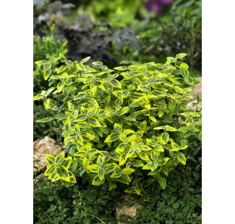 Zeleno - zlatožlté panašované listy kultivaru Euonymus fortuneii ´Emerald Gold´ vytvarované do malého stromčeka uvítajú každého návštevníka. Skúste si vytvarovať zlatý stromček" z bršlenu aj vy. Nič nepokazíte. Rýchlo rastie, dobre znáša rez a hodí sa do akéhokoľvek záhona. V zime sa listy vyfarbujú do ružova. Najviac mu vyhovuje chudobná pôda a plné slnko. Pokiaľ mu poskytnete oporu, vie sa dokonca po nej popínať. ***PARAMETRE***Výška - do 50 cm; Šírka - do 1 m; Odolnosť - plne mrazuvzdorná; Svetlo - slnko až polotieň; Zálievka - stredná; Pôda - stredne ťažké, piesočnatohlinité, hlinité; Vlhkosť pôdy - stredne vlhká; Farba listu - žltá_zelená; Rýchlosť rastu - stredne rýchly; Umiestnenie - skupinová výsadba_ pôdopokryvné_ svah_výsadba pod stromy_okraj záhona; Špeciálne vlastnosti - jedovatosť; Opadavosť - stálozelená rastlina
