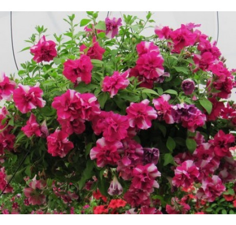 Táto odroda vytvára stredne dlhé previsy a jej prednosťou je kompaktný rast a bohaté rozkonárovanie. Kvety sú veľké plné a majú žiarivú farbu. Kombinácia bielej a červenej farby usporiadaných v pásoch naozaj zvýraznia každú závesnú nádobu. ***PARAMETRE***Svetlo - slnko; Pôda - stredne ťažká, piesočnatohlinitá, hlinitá; Umiestnenie - črepníky; Odolnosť - neprezimuje, letnička; Zálievka - stredná; Vlhkosť pôdy - stredne vlhká; Farba listu - zelená; Farba kvetu - biela_červená; Kvitnutie - 5,6,7,8,9; Špeciálne vlastnosti - priťahuje motýle a včely_dlhé kvitnutie; Výška - do 50 cm; Forma - previsnutá; Rýchlosť rastu - stredne rýchly; Opadavosť - opadáva; Šírka - do 30 cm