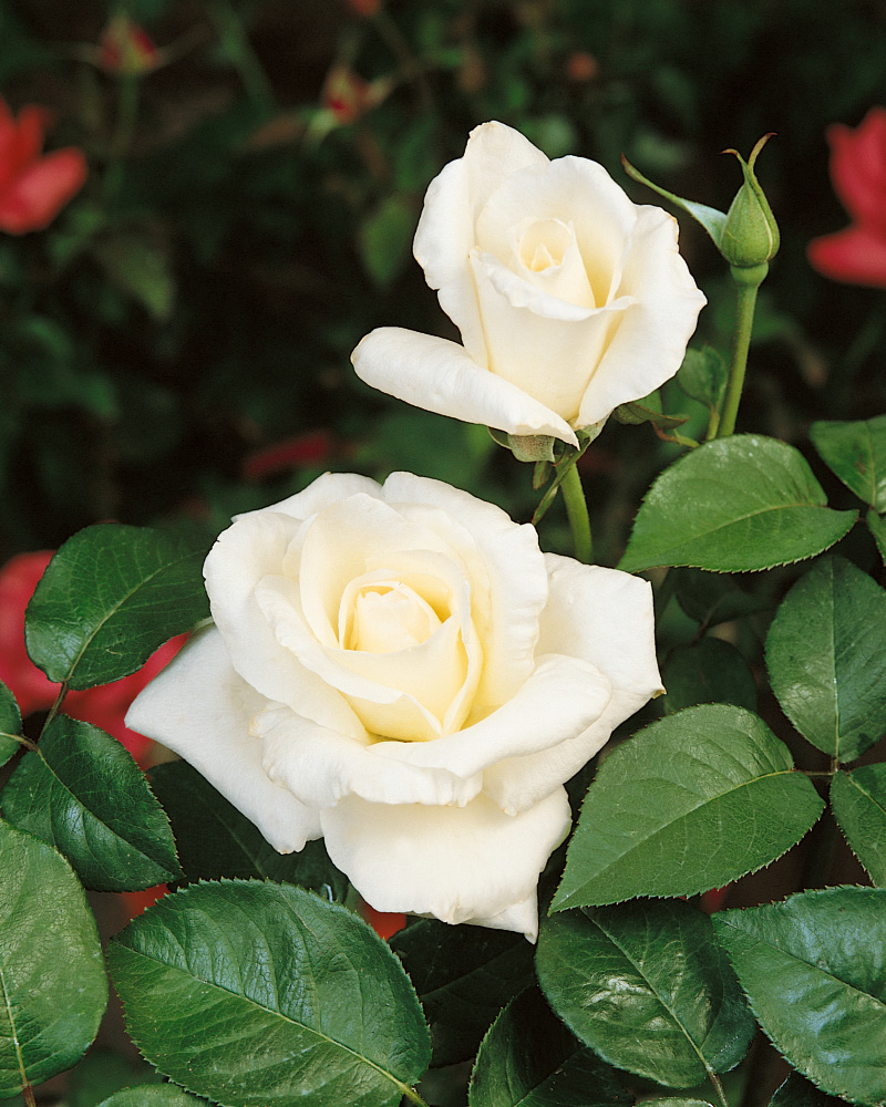 Snehobiele kvety ruží sú, tak ako aj u ľalií, symbolom čistoty a nevinnosti. Horúce slnečné lúče letného slnka belosť jej kvetov ešte viac zvýrazňujú. Kvitnutie - VI-X, Výška - 130-150 cm.
