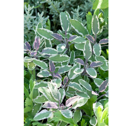 Ďalší atraktívny farebný kultivár v našej ponuke, ktorý by bol rád obyvateľom vášho rastlinného spoločenstva. Tmavá zelenoružová farba listu kontrastuje s jeho bielym lemovaním je nápadnejšia ako malý tmavofialový kvietok s modrým stredom. Rovnako ako ostatné variety šalvíi je užitočná v kuchyni, aj ako liečivá rastlina. Výťažky zo šalvie sú stáročia osvedčené ako protizápalové***PARAMETRE***Kvitnutie - 6, 7; Výška - do 30 cm; Odolnosť - mrazuvzdorná; Svetlo - slnko; Zálievka - malá ; Pôda - stredne ťažké, piesočnatohlinité, hlinité_ vápenatá pôda; Vlhkosť pôdy - suchá; Farba listu - viacfarebné, pestrolisté, panašované; Farba kvetu - fialová; Rýchlosť rastu - stredne rýchly; Umiestnenie - skupinová výsadba_črepníky; Špeciálne vlastnosti - liečivka_priťahuje motýle a včely_aromatické vôňou kvetu_aromatické vôňou listu