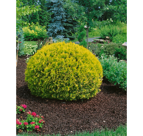 Guľovitá forma tuje so zlatožltými koncami konárikov. Vhodná do skalky aj do nádob. Tento trpasličí kultivar sa Vám určite zapáči. Strihať ho môžete koncom jari alebo v lete a tak udržiavať jeho tvar.***PARAMETRE***Výška - do 1 m; Šírka - do 1 m; Odolnosť - plne mrazuvzdorná; Svetlo - slnko až polotieň; Zálievka - stredná; Pôda - stredne ťažké, piesočnatohlinité, hlinité_ vápenatá pôda; Vlhkosť pôdy - stredne vlhká; Farba listu - žltá; Forma - guľovitá; Rýchlosť rastu - pomalý; Umiestnenie - skalka_črepník_skupinová výsadba_okraj záhona; Špeciálne vlastnosti - jedovatosť
