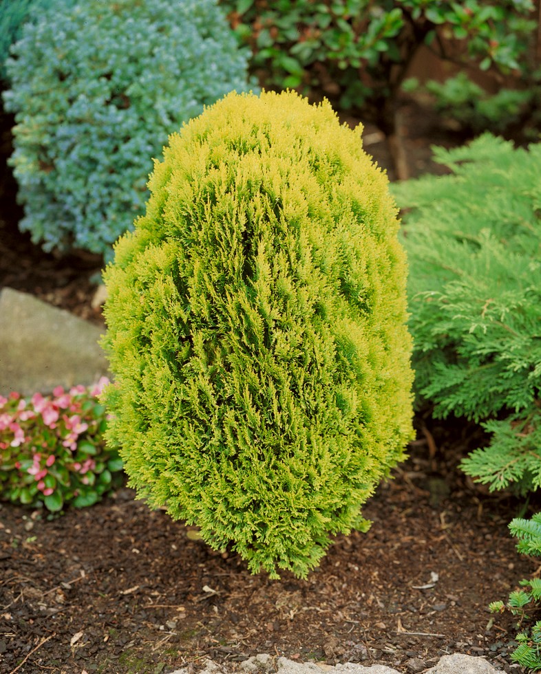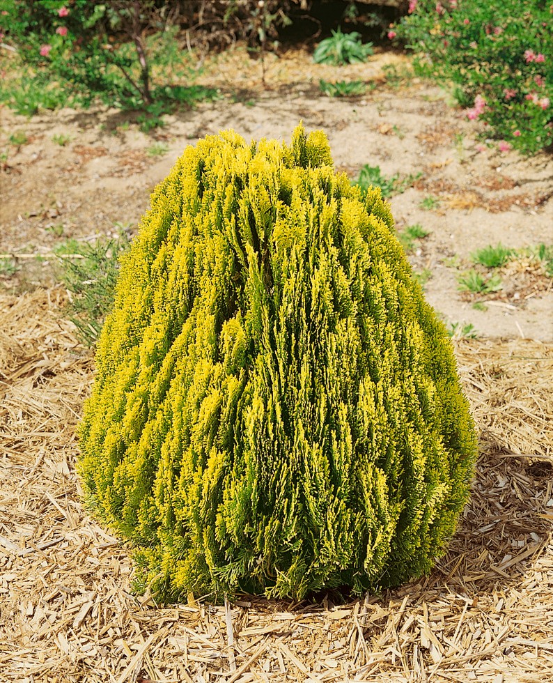 Zelenožlté konáriky tejto tuje upútajú pozornosť okoloidúcich. Vďaka kompaktnému rastu sa hodí do predzáhradky alebo aj na cintoríny. Dá sa pestovať aj vo väčšej nádobe. Na zimu vyfarbuje do bronzova. ***PARAMETRE***Výška - do 1 m; Šírka - do 1 m; Odolnosť - plne mrazuvzdorná; Svetlo - slnko až polotieň; Zálievka - stredná; Pôda - stredne ťažké, piesočnatohlinité, hlinité_ vápenatá pôda; Vlhkosť pôdy - stredne vlhká; Farba listu - žltá; Forma - pyramidálna; Rýchlosť rastu - pomalý; Umiestnenie - skalka_solitera_skupinová výsadba_črepníky; Špeciálne vlastnosti - jedovatosť